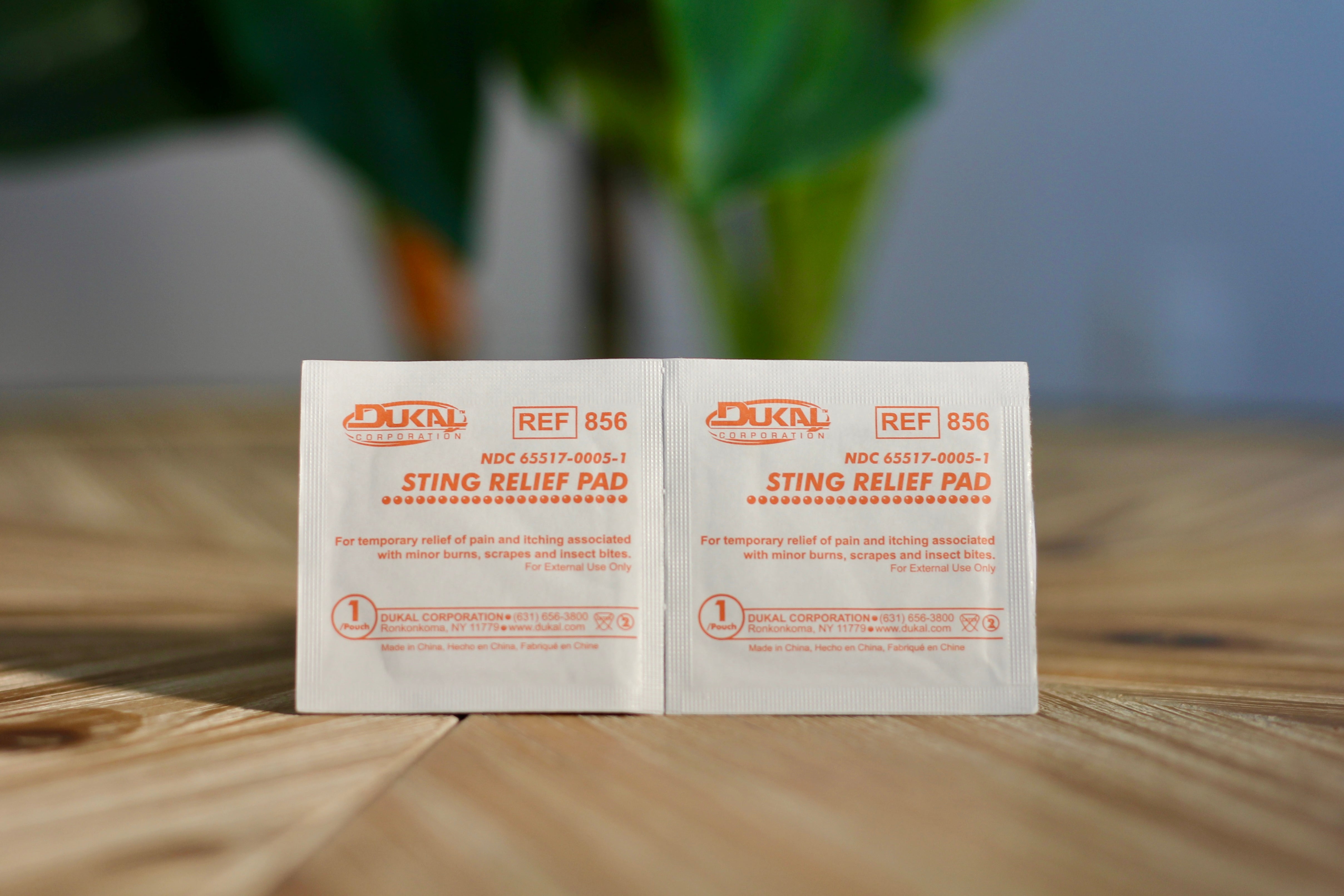 Dukal Sting Relief Pads. Case of 200 Anesthetic Pads for Burns, Scrapes. 2-Ply Non-Woven Pads in Individual Pouches, Non-Sterile Sting Relief Wipes