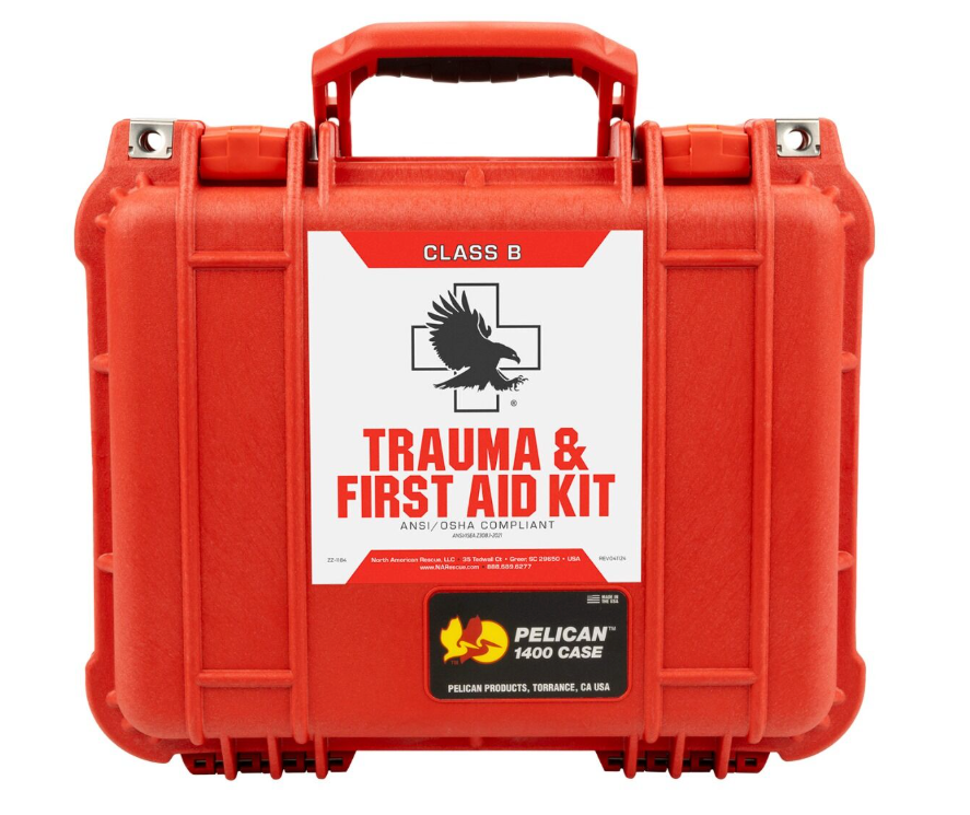 🗂️ Modular Organization – lid storage + labeled, removable pouches for quick treatment access (Meets Type IV ANSI Container requirements)