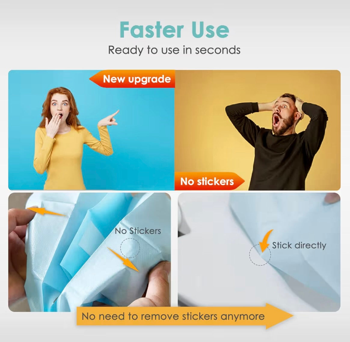 No more peeling stickers! Just unfold and stick onto any toilet seat in seconds—no sticky residue left behind.