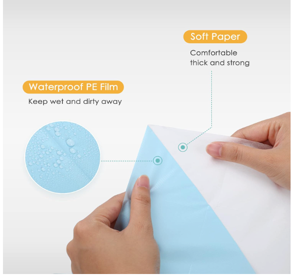 Our covers' waterproof PE film on the underside keeps liquids away, while the 100% pulp wood paper top provides a soft feel and keeps you dry!